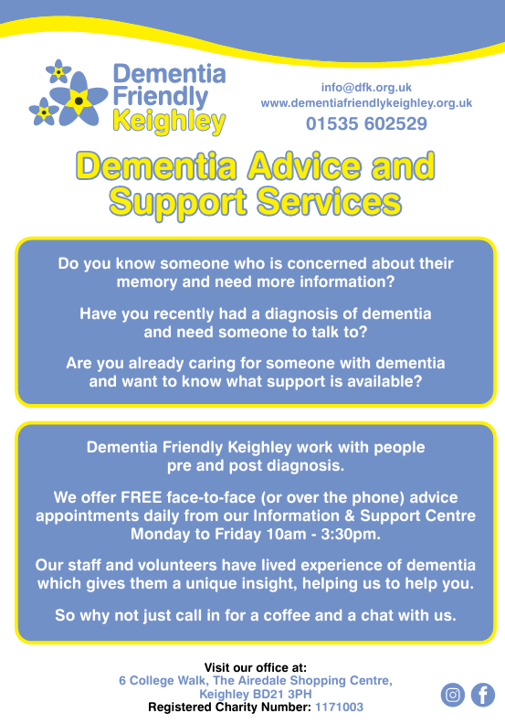 Take a moment to check out the fantastic feedback we have received from carers and visitors to Dementia Friendly Keighley. Visit Testimonials page >